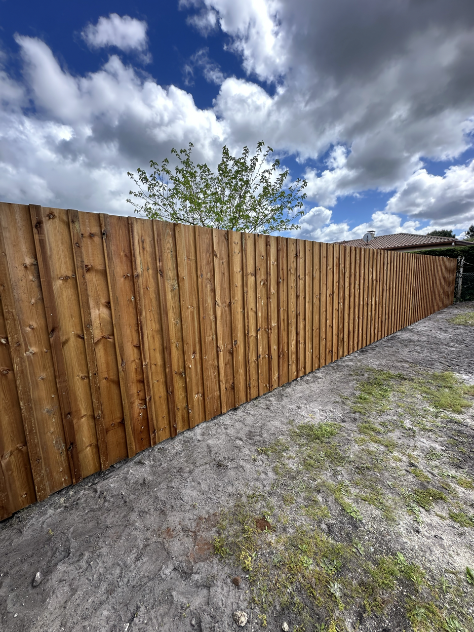 Avec nos clôtures sur-mesure en bois volige PIN BRUN, VERT ou GRIS. Composée de lames de 18x200mm avec ou sans couvre joints, fixées par vis INOX pour une meilleure tenue, ces clôtures offrent une solution idéale pour délimiter votre jardin, protéger votre propriété ou réduire le vis à vis du voisinage tout en préservant un aspect naturel et chaleureux avec un produit noble et qui ce marie parfaitement avec la nature. Les lames en volige sont soigneusement sélectionnées pour leur qualité et leur durabilité par nos fournisseurs. Elles sont traitées contre les intempéries, les insectes et le pourrissement, garantissant ainsi une longévité accrue. Le design épuré et moderne de la volige permet d’allier esthétisme et fonctionnalité, tout en apportant une certaine intimité sans sacrifier la lumière et la ventilation. Disponible en différentes hauteurs et finitions, cette clôture s'adapte à tous les types de terrain, pour une installation rapide et durable. La clôture en PIN volige apporte une touche authentique et naturelle à votre espace extérieur.